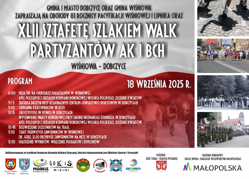 Sztafeta odbędzie się 18 września 2025 roku, na trasie: Wiśniowa – Dobczyce. Patronat Honorowy nad wydarzeniem objął pan Łukasz Smółka – Marszałek Województwa Małopolskiego. Patronat nad wydarzeniem objął pan Józef Tomal – Starosta Myślenicki.